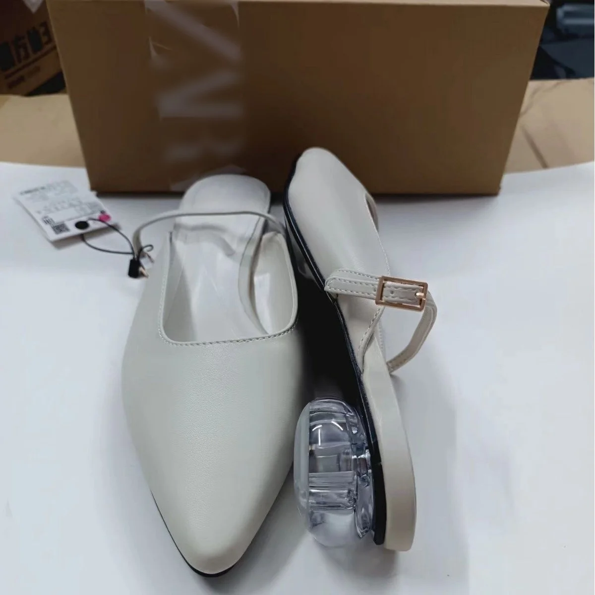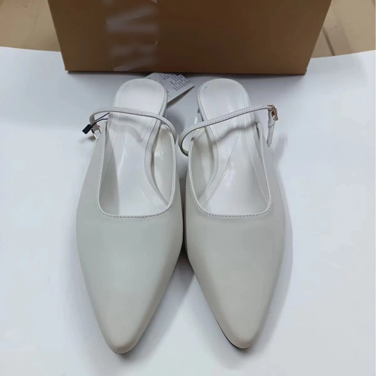 QuiteS 2026 Ladies Summer Casual Stiletto Sandals New Denim Cloth with Shallow Mouth and Muller Flat Design Slip-On Closure